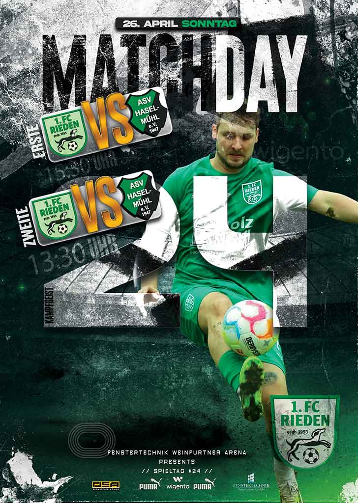 Am kommenden Sonntag kommt es um 15:30 Uhr zum Vilstalderby. Auf heimischem Gelände erwartet der Tabellenvierte 1. FC Rieden (41 Zähler, 23 Spiele) den Tabellenvorletzten aus Haselmühl (15/23).