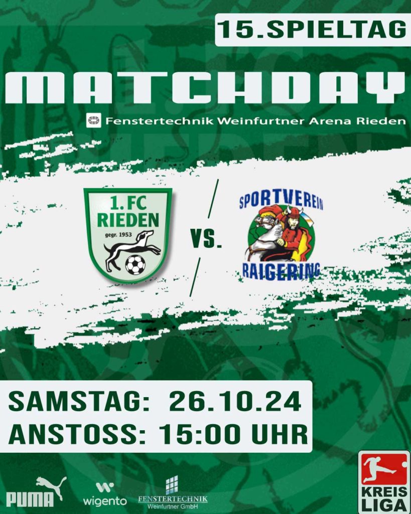 Am Samstag um 15 Uhr empfängt der 1.FC Rieden zum ersten von drei aufeinanderfolgenden Heimspielen die Panduren aus Raigering. Die Amberger Vorstädter belegen mit 23 Zählern einen respektablen sechsten Platz und können mit den bisherigen Saisonverlauf durchaus zufrieden sein. Vergangenen Samstag besiegte die Truppe von Trainer Thomas Ficarra den SV Schmidmühlen klar mit 4:1 Toren, eine Woche zuvor trennte man sich genauso wie der gestürzte Tabellenführer aus Rieden mit 2:2 im Auswärtsspiel beim SV Hubertus Köfering.