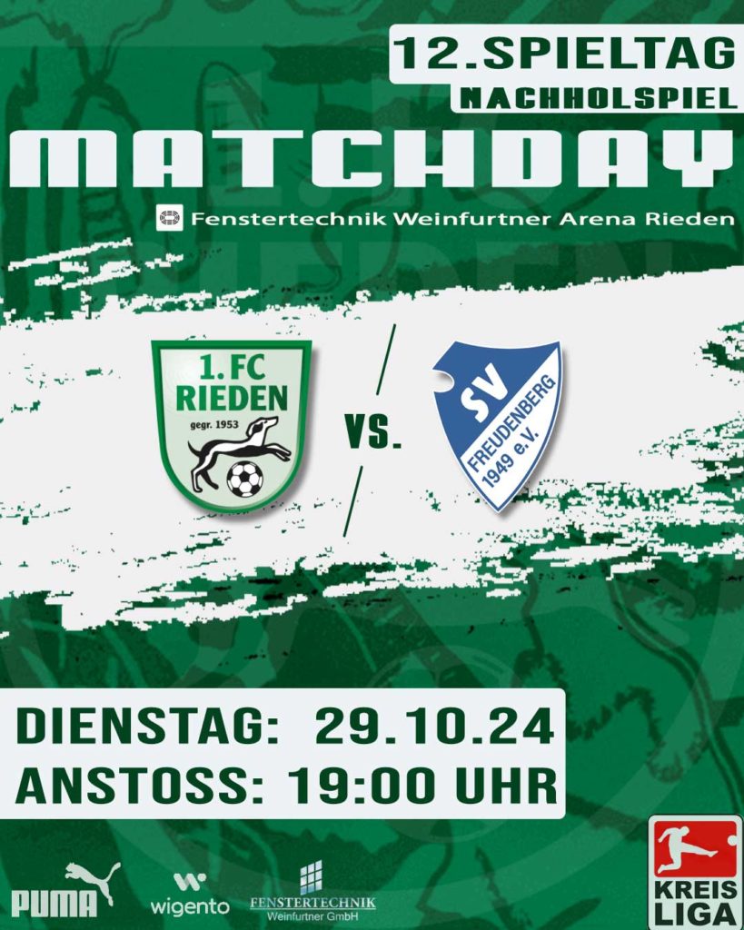 Am Dienstag um 19 Uhr empfängt der 1.FC Rieden den Tabellen-vierten SV Freudenberg zum Nachholspiel. Da die SF Ursulapoppenricht überraschend letzten Sonntag nur zu einem 1:1 Remis gegen die SG Kastl/Utzenhofen gelangte, könnten die Platzherren mit einem Sieg wieder die Tabellenspitze zurückerobern.