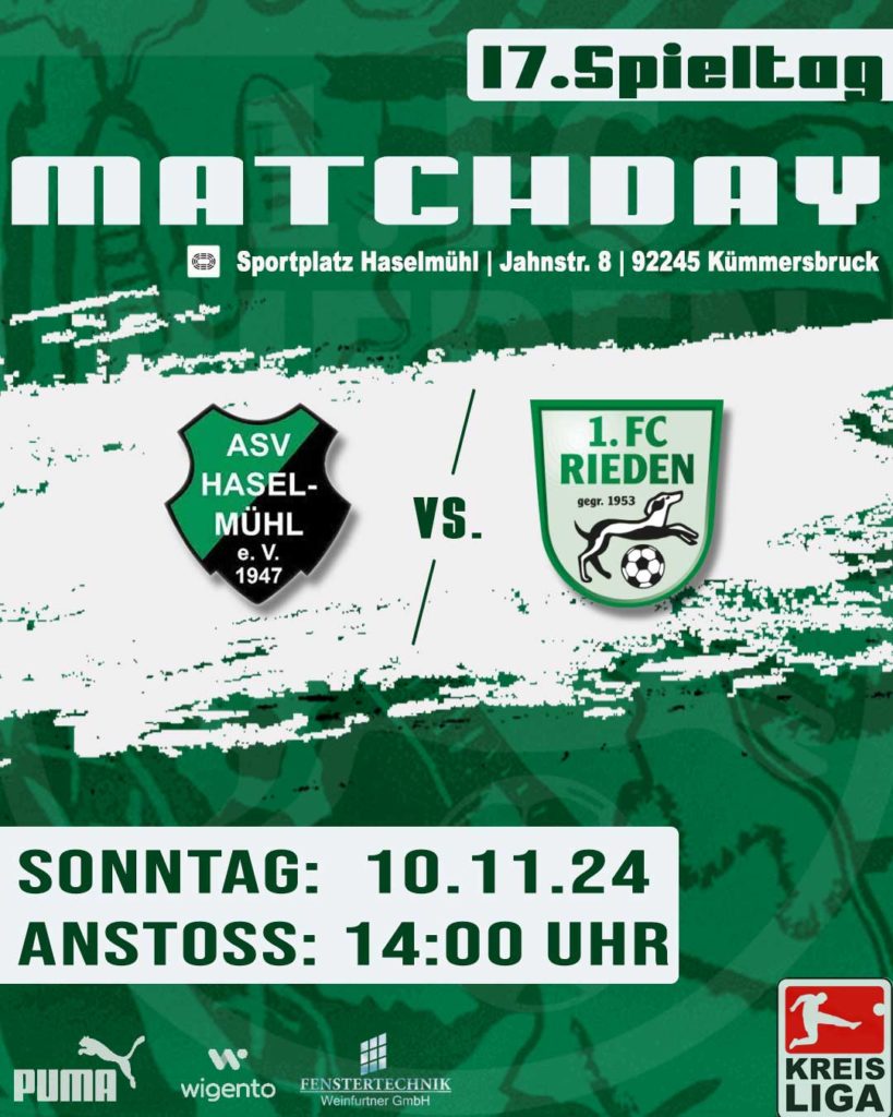 So dauerte es bis zur 20. Minute bis Goalgetter Bastian Härtl zur ersten nennenswerten Gelegenheit kam, sein Schuss wurde jedoch von der vielbeinigen ASV-Abwehr abgeblockt. Nach einer Ecke war in der 32. Minute Daniel Wein zur Stelle und köpfte Rieden in Führung. Noch zweimal brannte es im ersten Spielabschnitt lichterloh im Haselmühler Strafraum als Bastian Härtl zuerst um Millimeter am Tor vorbeizielte (39.) und nur zwei Minuten später das Leder an den rechten Pfosten hämmerte. Nach der Halbzeitpause wurde das Spiel zunehmend nicklicher und hektischer.