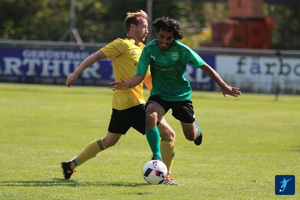 Danach kam die Heller-Elf besser ins Spiel, das in der ersten Halbzeit von viel Mittelfeldgeplänkel und wenigen Torchancen charakterisiert war. In der 40. Minute fasste sich Martin Hillen – nach schöner Falk-Vorlage – ein Herz und knallte die Kugel per Aufsetzer aus gut 25 Meter ins linke Toreck. Nur drei Zeigerumdrehungen später gelang den Gästen nach einem gut getimten Brewitzer-Kopfball mit Hilfe des Innenpfostens der erneute Führungstreffer. Direkt nach dem Anstoß gelang der Heimelf durch einen von Simon Heller getretenen Foulelfmeter der Ausgleich, nachdem Ammar Aziz Hassan von den Beinen geholt wurde.