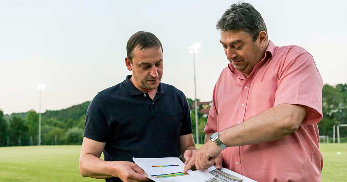 Planung der Flutlichtanlage des Riedner Vorstands Fischer Hans und Weigert Richard. Foto: 1.FC Rieden