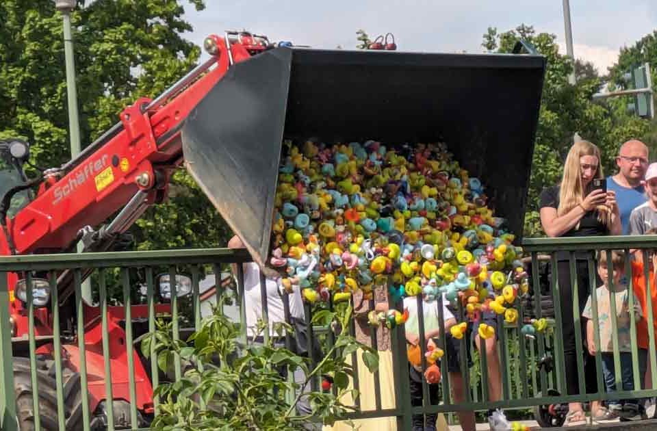 Anlässlich des Familien und Sommerfestes des 1. FC Rieden startete zum vierten Male das legendäre Entenrennen auf der Vils. Das Interesse der Bevölkerung dazu war erneut enorm. Nicht nur die Kinder