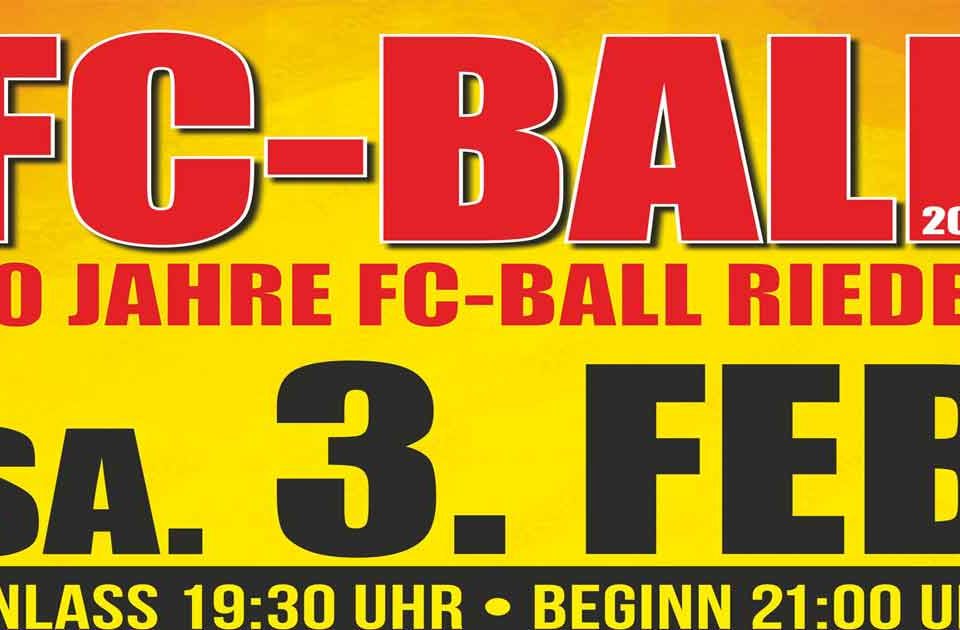 19. Januar 2024 19. Januar 202403. Februar der legendäre FC-BallDer FC-Ball in der Riedener Mehrzweckhalle ist legendär und weit über die Landkreisgrenzen hinweg bekannt und beliebt. Am 03. Februar steigt der Faschingsball, der vom 1.FC Rieden und der Narrhalla Rot-Weiß Gold