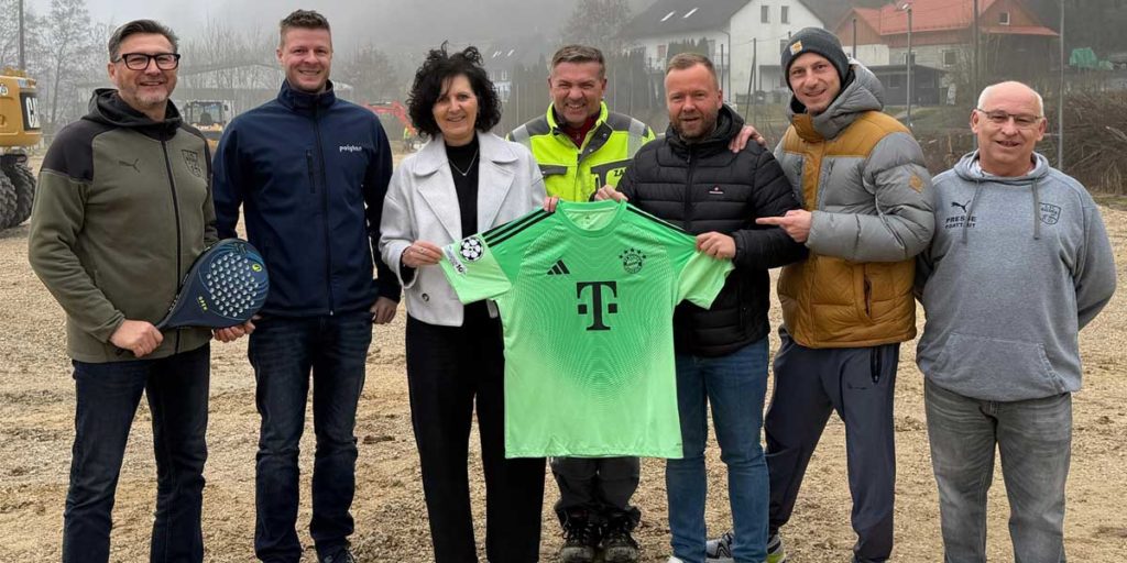Zufriedene Gesichter bei den Verantwortlichen des 1. FC Rieden. Kürzlich informierte sich eine Abordnung des Vereins mit Unterstützung von MdL Bernhard Heinisch (FW) bei Bauleiter Stephan Amler (Fa. Polytan) und Herbert Zapf (Baggerbetrieb) vor Ort über den aktuellen Stand des Baufortschritts für den entstehenden Mehrgenerationenspielplatz mit Kunstrasentrainingsplatz und Padel-Court. Von beiden Seiten war zu erfahren, dass man sich gut im Zeitplan befinde und damit dem offiziellen Eröffnungstermin am 9. Mai mit Entenrennen, Kinderolympiade, AH-Spiel gegen eine FC-Bayern-Oldie-Auswahl Ü45 (MdL Heinisch hatte schon mal ein signiertes Manuel-Neuer-Trikot dabei) u. v. m. nichts im Wege stehen sollte. Mit der Integration neuer Motorik-Spielgeräte, einem Wasserspielplatz und einem Kneippbecken soll ein erhöhter Spiel- und Erlebniswert geschaffen werden.
