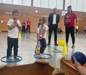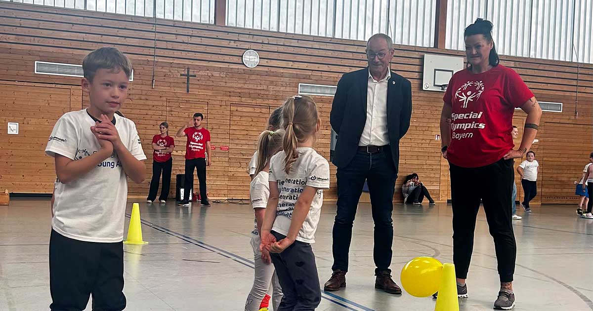 Kinder mit und ohne Behinderung erfüllten dabei in der Sporthalle der Albert-Schweitzer-Grundschule an verschiedenen Stationen mit großem Ehrgeiz ihre sportlichen Herausforderungen. Die inklusive Sportveranstaltung wurde von dem Verein „Special Olympics Bayern“ ins Leben gerufen, organisiert hat das Event die Lebenshilfe Amberg-Sulzbach in Zusammenarbeit mit der Albert-Schweitzer-Grundschule und dem 1.FC Rieden. Katharina Reuter, Referentin für Inklusion der Lebenshilfe Amberg-Sulzbach war voll des Lobes „ Der heutige Tag hat einmal mehr gezeigt welches große Interesse an solchen Veranstaltungen besteht und dass auch Menschen mit Behinderung einen sehr guten Zugang zum Sport haben.“
