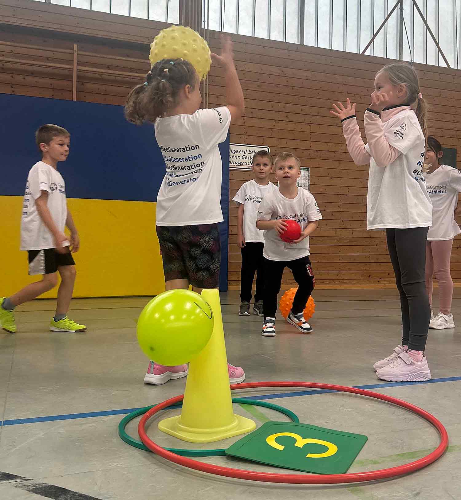 Kinder mit und ohne Behinderung erfüllten dabei in der Sporthalle der Albert-Schweitzer-Grundschule an verschiedenen Stationen mit großem Ehrgeiz ihre sportlichen Herausforderungen. Die inklusive Sportveranstaltung wurde von dem Verein „Special Olympics Bayern“ ins Leben gerufen, organisiert hat das Event die Lebenshilfe Amberg-Sulzbach in Zusammenarbeit mit der Albert-Schweitzer-Grundschule und dem 1.FC Rieden. Katharina Reuter, Referentin für Inklusion der Lebenshilfe Amberg-Sulzbach war voll des Lobes „ Der heutige Tag hat einmal mehr gezeigt welches große Interesse an solchen Veranstaltungen besteht und dass auch Menschen mit Behinderung einen sehr guten Zugang zum Sport haben.“