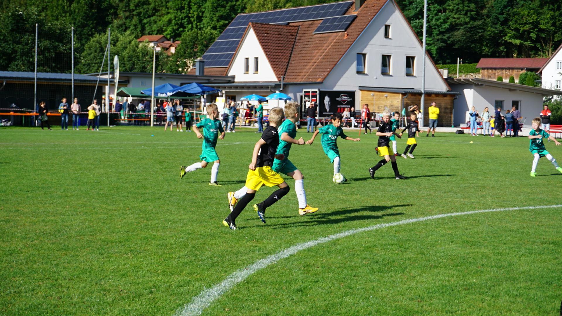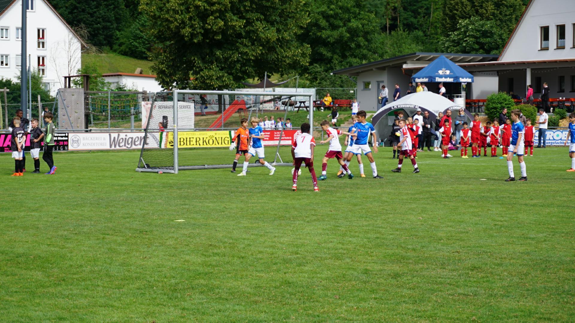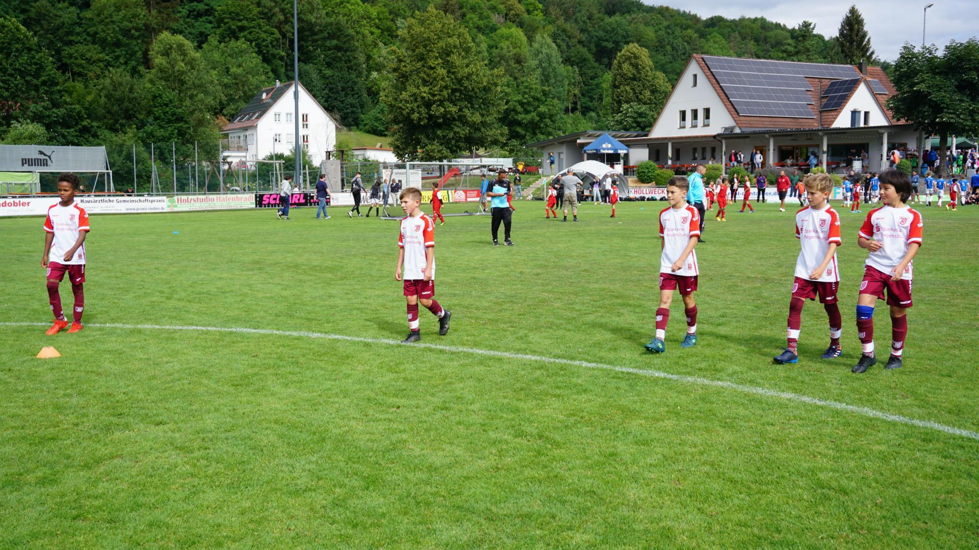 Nicht weniger als 57 Teams von der G-E Schüler waren zur Freude der anwesenden Familie Hauser, im Großeinsatz. Am Vormittag präsentierte sich die E1 (U10/U11) -Truppe des SSV Jahn Regensburg in absoluter Topform. 6 Spiele 6 Siege, 18:0 Tore lautete die makellose Bilanz am Ende. Zweiter wurde der FSV Steinsberg vor der Vertretung des 1.FC Schweinfurt. Aber auch bei den F1+F2 (U8/U9) -Junioren kristallisierte sich ein übermächtiger Gegner heraus. Der TSV Wacker 50 Neutraubling dominierte vormittags (F1 /6 Siege, 26:2 Tore) sowie nachmittags (F2 /6 Siege, 24:2 Tore) nach Belieben und sicherte sich zweimal Platz 1 vor den ASV Burglengenfeld und den SV Raigering sowie vor den FC Pielenhofen - Adlersberg und wiederum den SV Raigering.