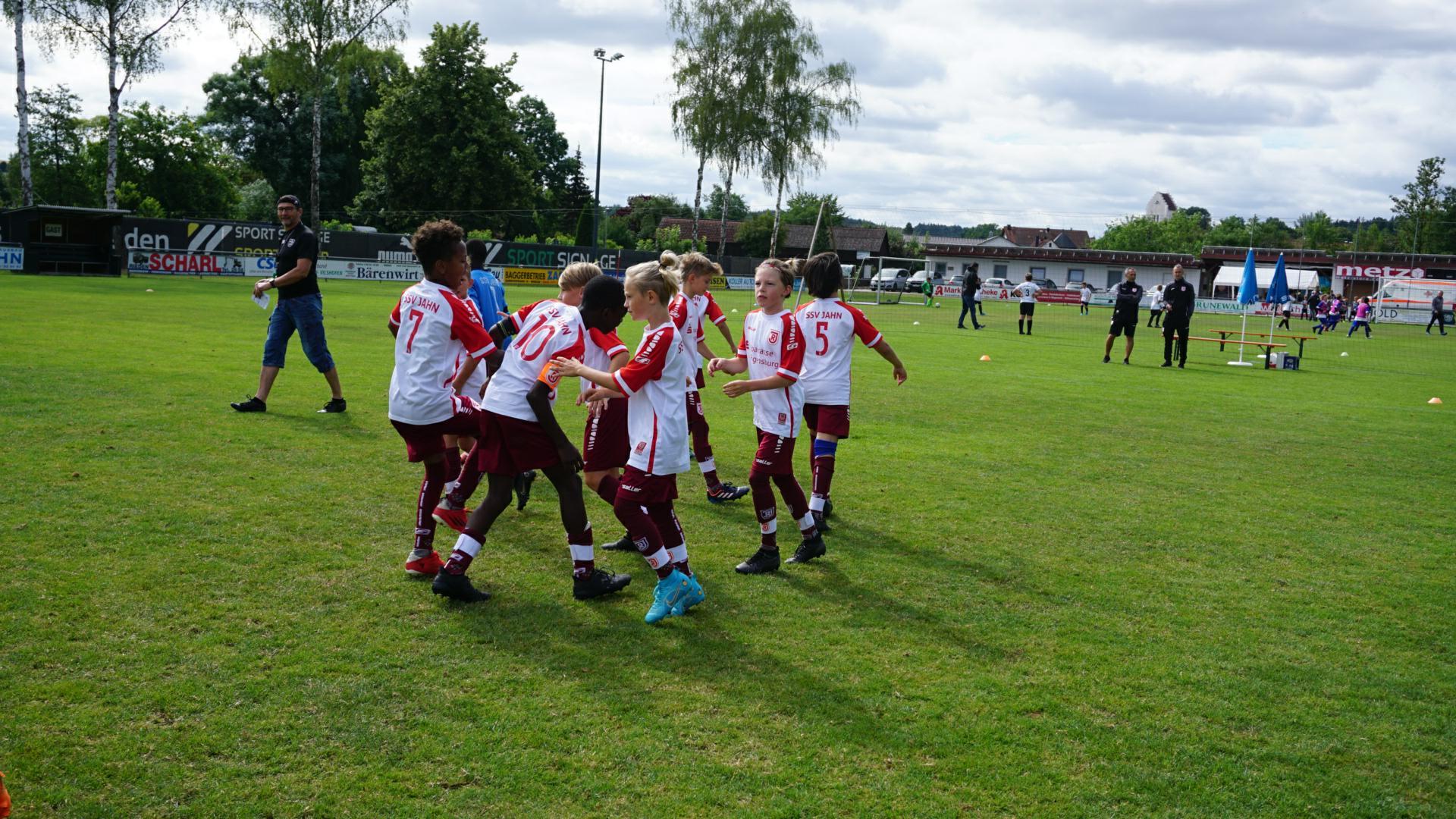 Der 1.FC Rieden kam über einen 11. Platz nicht hinaus. Damit es an diesen Tag für die Neutraublinger der „Tag der weißen Weste“ wurde, dafür sorgte das dritte Team in Bunde. Die E2-Schützlinge des TSV marschierten ebenfalls ohne Punktverlust zum Titelgewinn vor den Abordnungen der SG Duggendorf / Holzheim /Kallmünz und des starken Gastgebers 1.FC Rieden.Viel Spaß bereiteten den zahlreichen Zuschauern die Auftritte der „Pampers-Rocker“. Die G (U7) -Mannschaften spielten ihre Begegnungen im „Funino-Modus“ (drei gegen drei ohne Torwart mit jeweils 2 kleinen Toren auf jeder Seite, die Tore werden gezählt und wenn der Abstand größer als 3 Tore ist, darf die zurückliegende Mannschaft ihren 4. Spieler einsetzen bis der Abstand wieder unter 3 Tore sinkt. Gewertet wird jedes Spiel nur mit 1:0 oder bei Gleichheit der Tore 1:1).