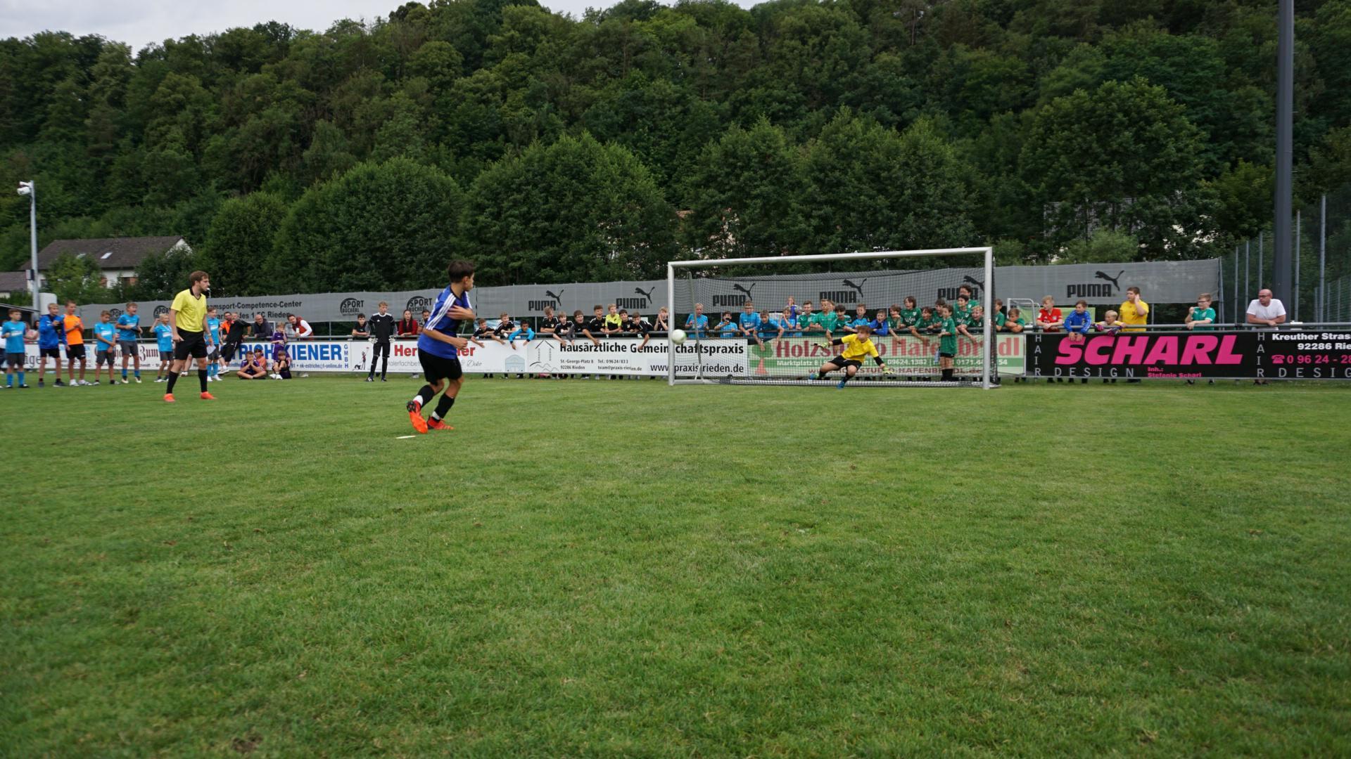 Am Samstag standen beim „Sport SIGNAGE“ Junioren Cup die 14 Mannschaften der D-Junioren (U12/U13) im Mittelpunkt des Geschehens. Mit 7 Siegen ohne jegliches Gegentor zog die SpVgg Ebermannsdorf souverän ins Finale ein. In einem packenden Endspiel behielt man mit 5:4 nach 9 Meter-Schießen gegen die SpVgg Weiden die Oberhand. Dritter wurde der TSV Kareth Lappersdorf II.Die beiden Gastgebervertretungen des 1.FC Rieden belegten die Platzierungen 9+14. Beim 18. Hauser-Gust-Gedächtnis-Cup am Sonntag herrschte großer Andrang.