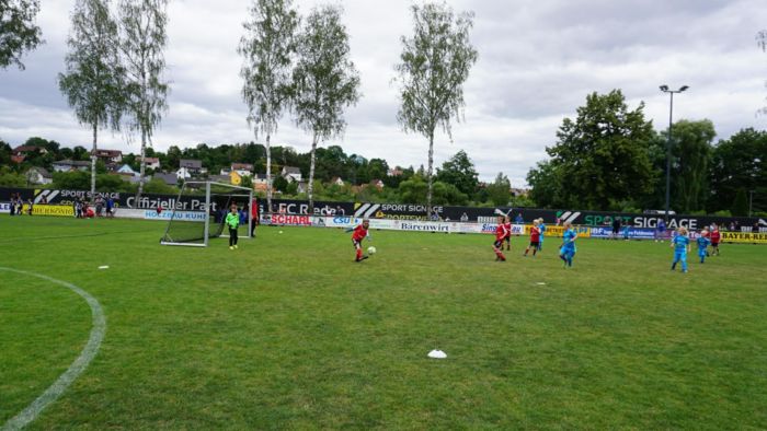 Nicht weniger als 57 Teams von der G-E Schüler waren zur Freude der anwesenden Familie Hauser, im Großeinsatz. Am Vormittag präsentierte sich die E1 (U10/U11) -Truppe des SSV Jahn Regensburg in absoluter Topform. 6 Spiele 6 Siege, 18:0 Tore lautete die makellose Bilanz am Ende. Zweiter wurde der FSV Steinsberg vor der Vertretung des 1.FC Schweinfurt. Aber auch bei den F1+F2 (U8/U9) -Junioren kristallisierte sich ein übermächtiger Gegner heraus. Der TSV Wacker 50 Neutraubling dominierte vormittags (F1 /6 Siege, 26:2 Tore) sowie nachmittags (F2 /6 Siege, 24:2 Tore) nach Belieben und sicherte sich zweimal Platz 1 vor den ASV Burglengenfeld und den SV Raigering sowie vor den FC Pielenhofen - Adlersberg und wiederum den SV Raigering.